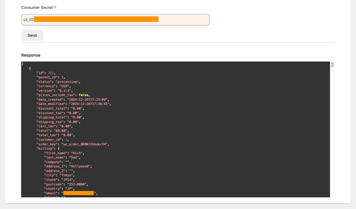 200 OK,404 Not Found). - Response Body: Shows the JSON data returned by the WooCommerce API. This is vital for verifying the data structure and content.